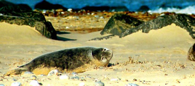 The seals come to the beach to give birth to their pups between late November and January. It’s an amazing sight as around 100 snow-white seal pups are born each year to the light-grey female seals, while the darker males wait in the water.